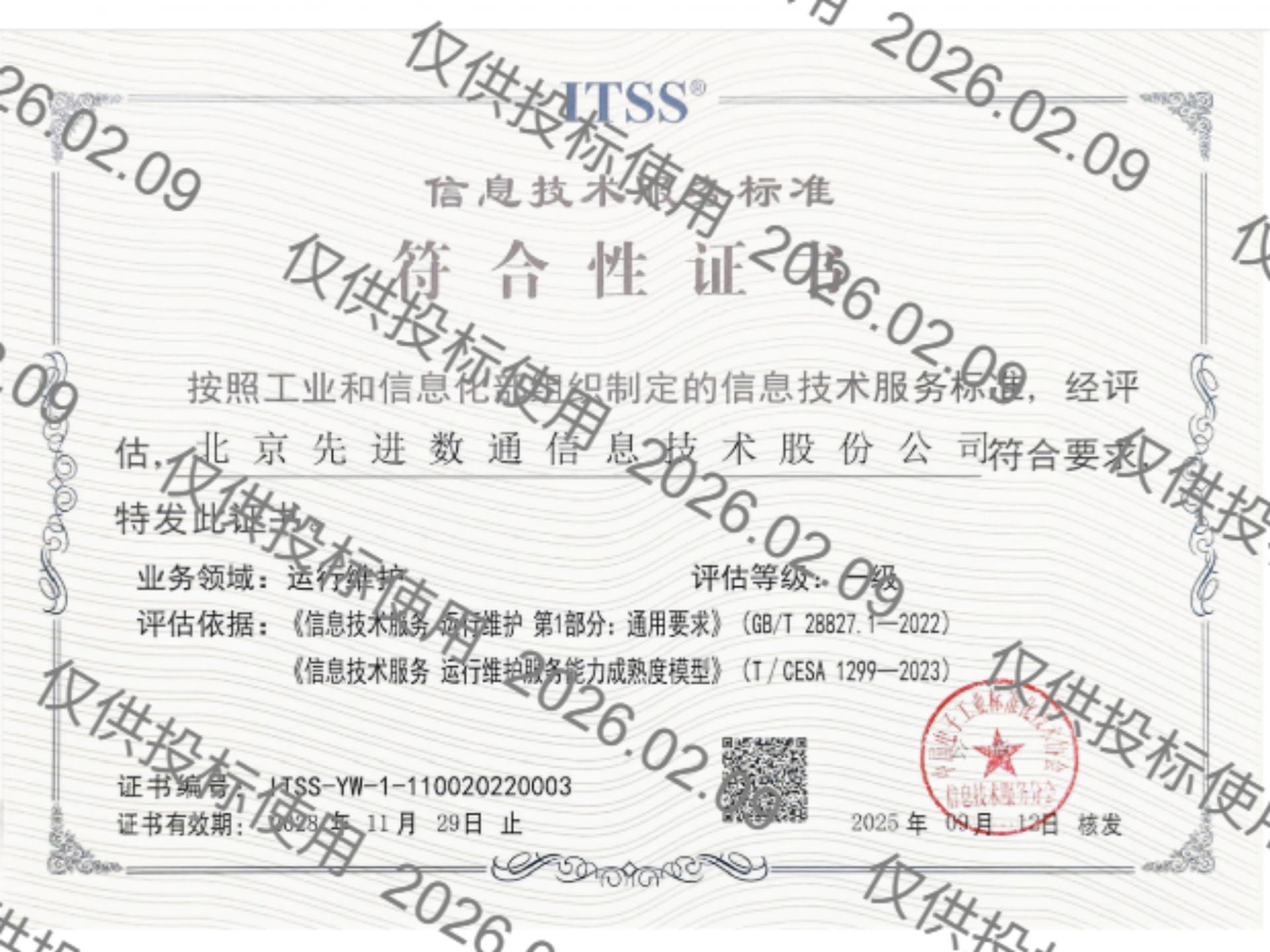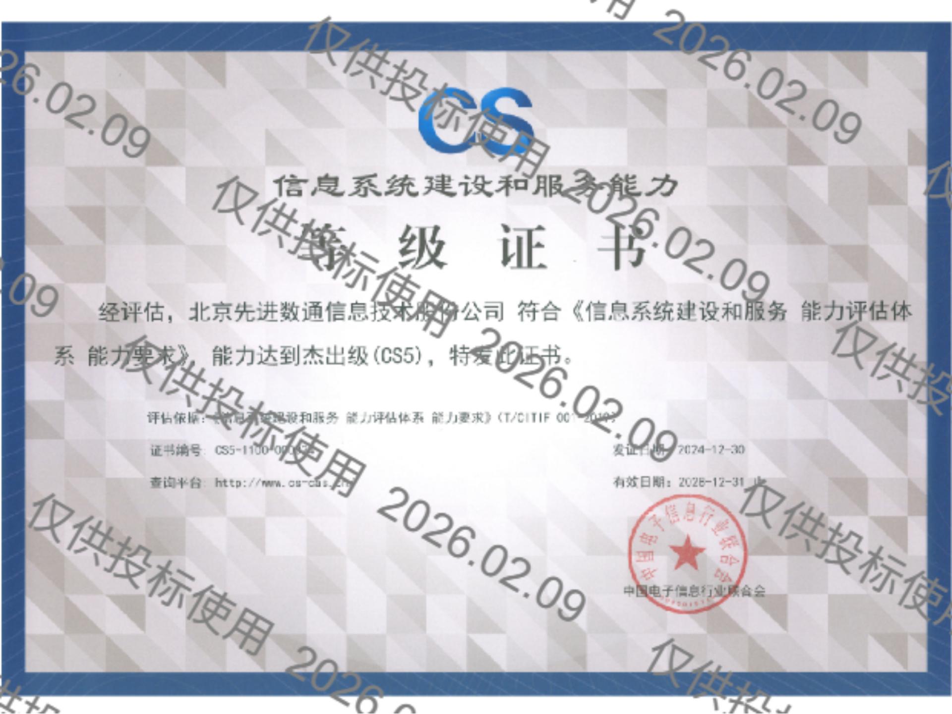 BG大游集团先后取得CMMIL5、软件能力成熟度五级(SPCA 5)、信息系统建设和服务能力评估体系(CS)5级、ITSS成熟度一级、信息系统安全集成服务资质二级、信息系统安全运维服务资质二级、国产化信息系统集成和服务能力评估四级(LS4)、北京市企业技术中心等资质认证,并取得ISO9001、ISO20000、ISO27001、ISO14001、ISO45001、ISO22301、ISO37001、ISO28001、GBT29490等标准体系认证,具备行业领先的技术开发、工程实施及服务保障能力。